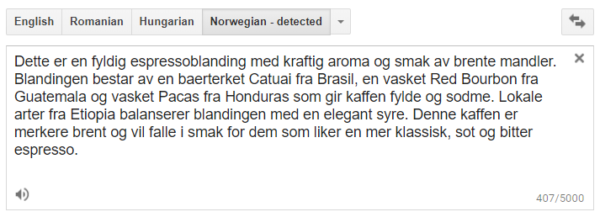 Megbolondítom egy kis mézzel, hadd élvezzem, ha már kóstolok. Kevésbé keserű, de annál gyümölcsösebb. Csalni akarok. Hogy majd a leírásból kiszedem, milyen ízjegyei vannak és akkor jól megírom, hogy a cseresznye alsóhangon bekacsint a meghatározó citrusjegyek mellett meg ilyenek. Türelmesen begépelem Google Translate-be a csomagolás norvég feliratát, hogy (meglepetés!) abszolút semmi hasznos infóval ne szolgáljon a fordítás. Így lehet csak az én képzeletem a gyümölcsös íz, de valami diófélét biztosan érzek. Bár az sem kizárt, hogy az “ízetlen mandula” a ludas ebben. Azt viszont teljes bizonysággal állítom, hogy pálinkát még nyomokban sem tartalmaz ezen isteni fekete nedű!